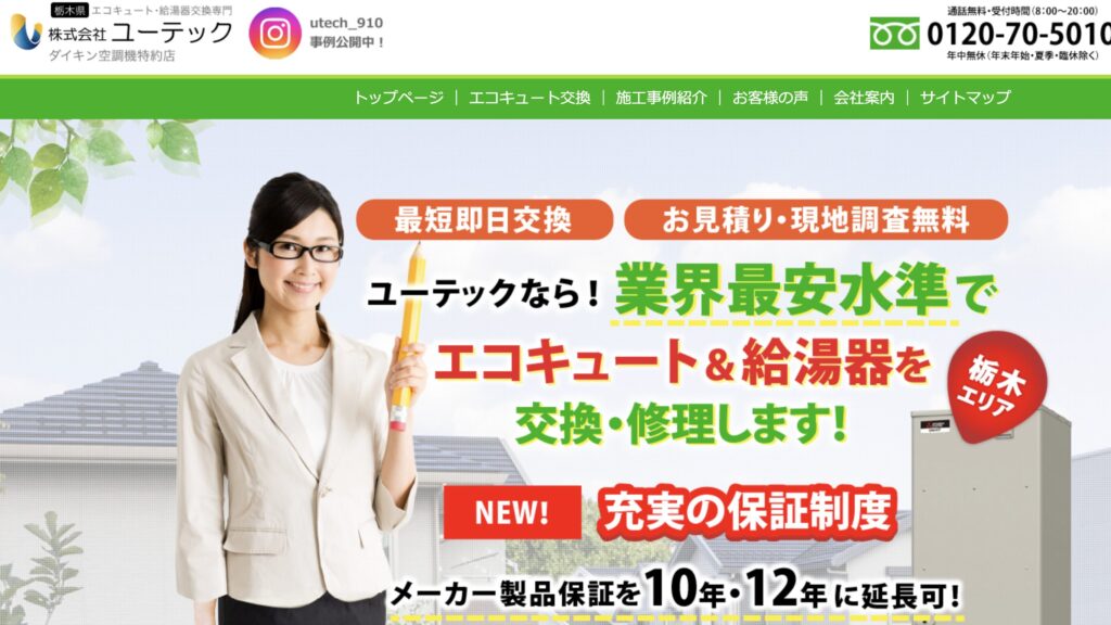 運営会社 (株)ユーテック(宇都宮店)エコキュート交換専門店