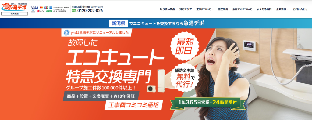 | 運営会社 | 急湯デポ 新潟施工センター(yhs株式会社) 新潟県新潟市 東出来島2丁目10 |