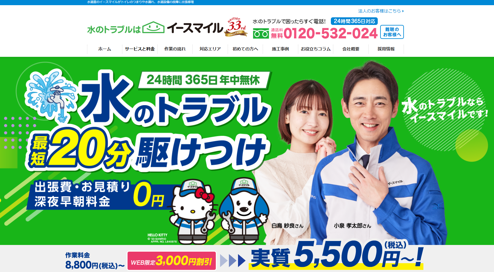 365日24時間受付で緊急時も即駆けつけ可能。見積もりは無料で、PayPayやローン払いなど柔軟な決済に対応しています。