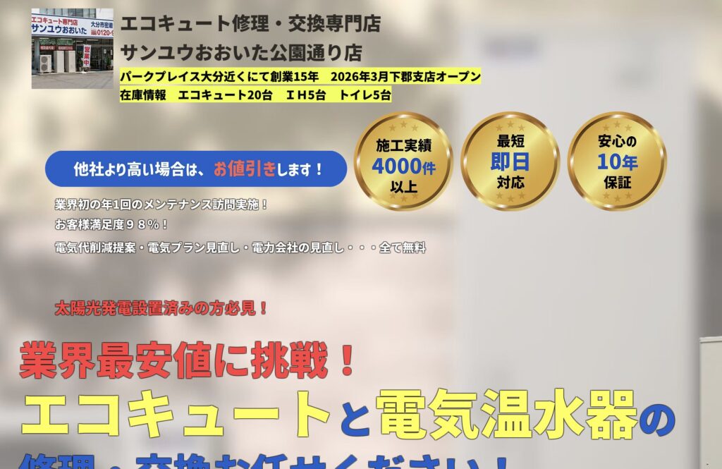 運営会社 エコキュート専門店サンユウおおいた公園通り店