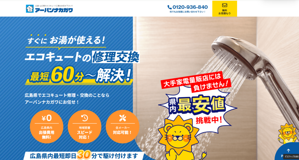 | 運営会社 | エコキュート修理交換 アーバンナカガワ 福山営業所 広島県福山市 南町8-13 |