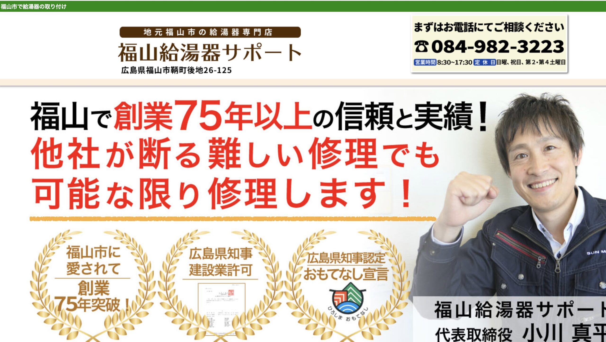 | 運営会社 | 福山給湯器サポート 広島県福山市鞆町後地26−125 |