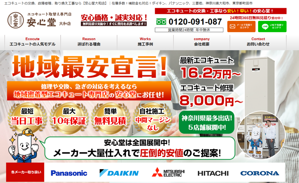 | 運営会社 | エコキュート取替専門店 安心堂 大和店 神奈川県大和市 南林間1丁目10−17 |