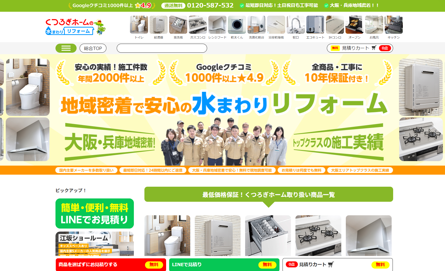 365日24時間受付で緊急時も即駆けつけ可能。見積もりは無料で、PayPayやローン払いなど柔軟な決済に対応しています。