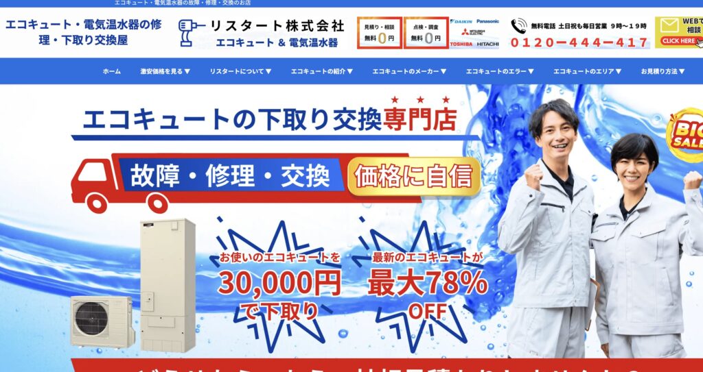 年中無休24時間体制で申し込みを受け付けているので、エコキュートの急な故障時に頼れる業者です。