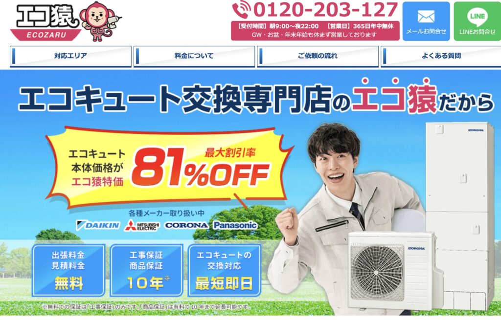 | 運営会社 | エコキュート交換専門店のエコ猿【吹田支店】 大阪府吹田市江坂町2丁目18−16 |