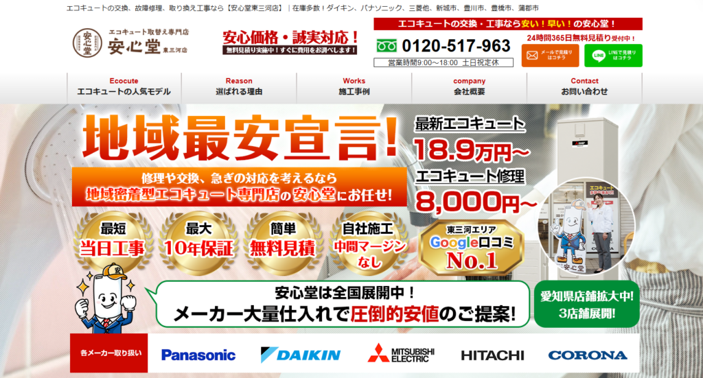 | 運営会社 | エコキュート専門店 安心堂 東三河店 愛知県豊橋市 上平井409−47 |