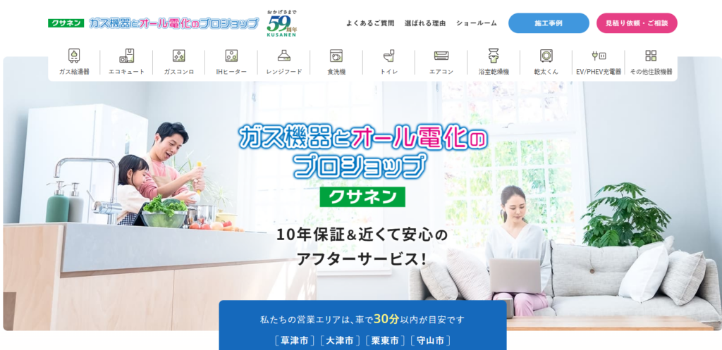 | 運営会社 | ガス機器とオール電化のプロショップ クサネン 大津仰木の里店 滋賀県大津市仰木の里7丁目1−6 |