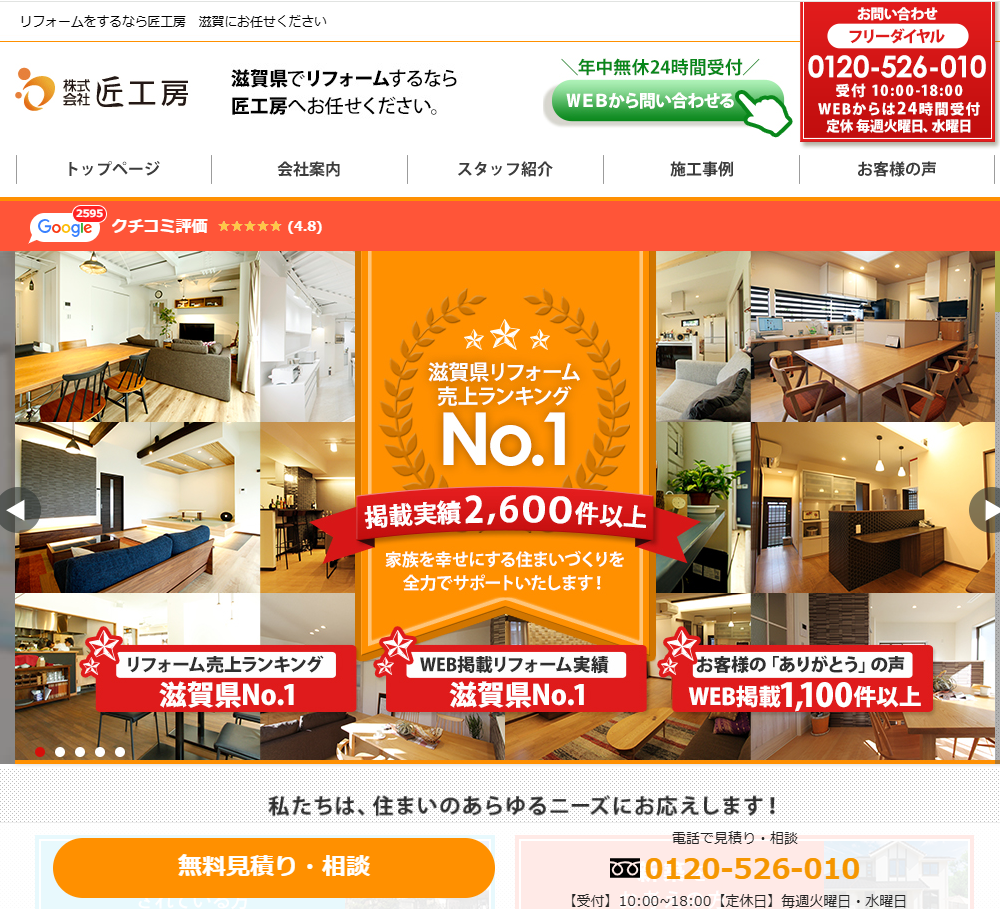 | 運営会社 | 匠工房 大津湖西店 滋賀県大津市 真野2丁目29−1 |