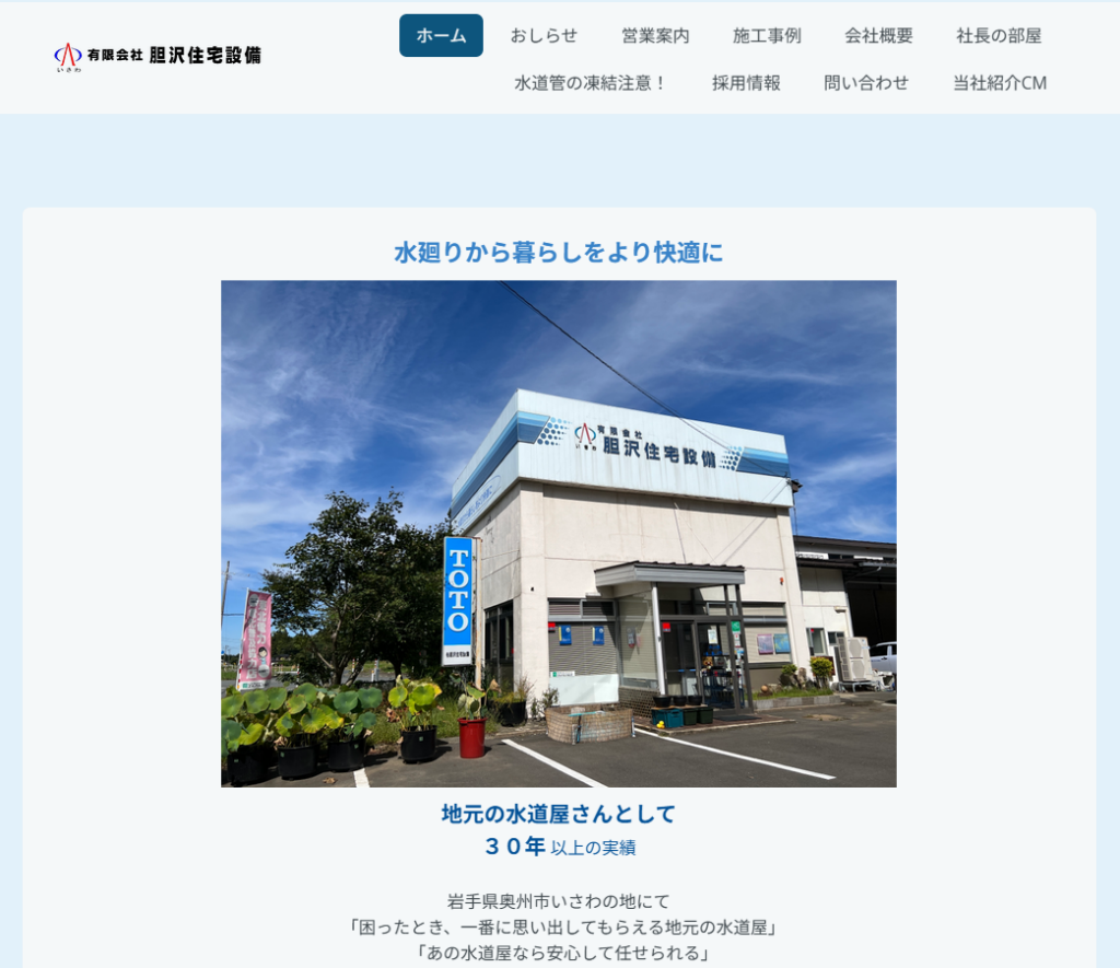 | 運営会社 | ㈲胆沢住宅設備 岩手県奥州市胆沢小山字舘189-3 |