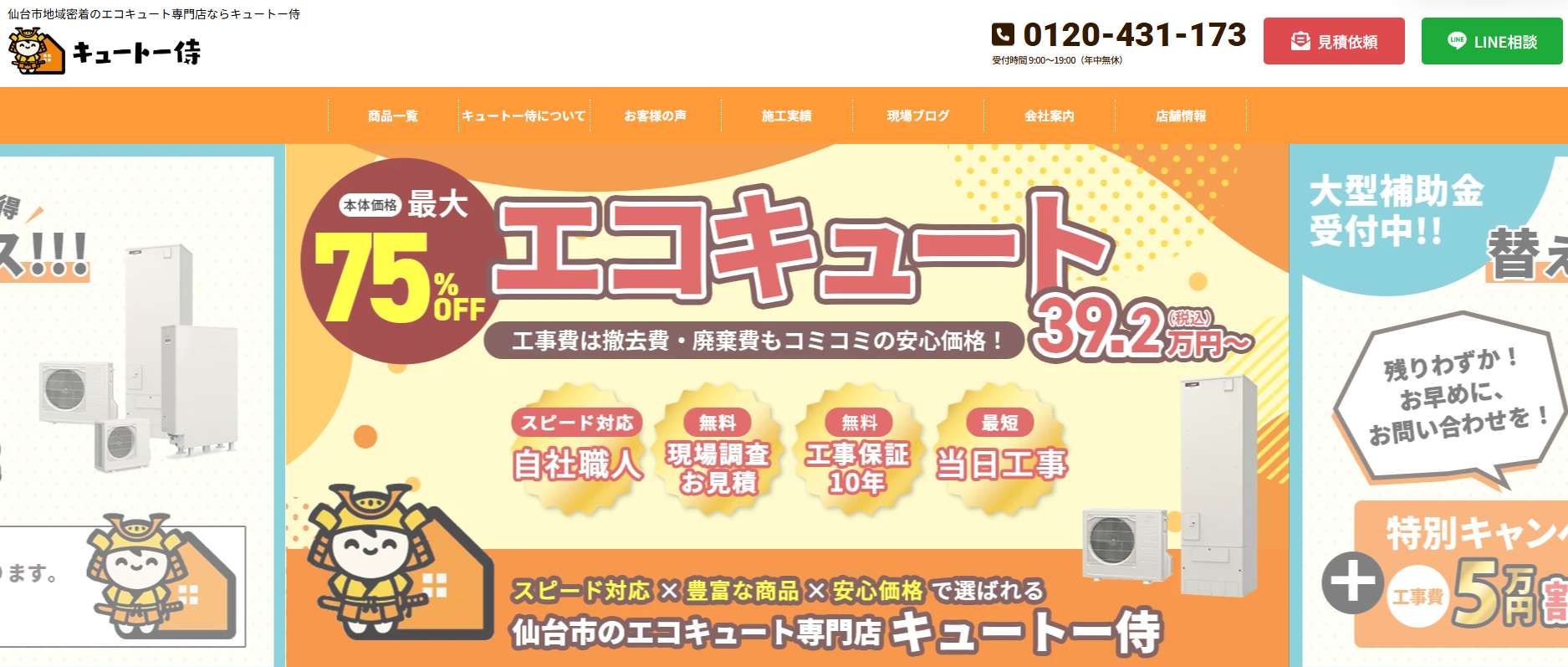 | 運営会社 | エコキュート専門店 キュートー侍福島店 福島県郡山市 富田東3丁目104 |