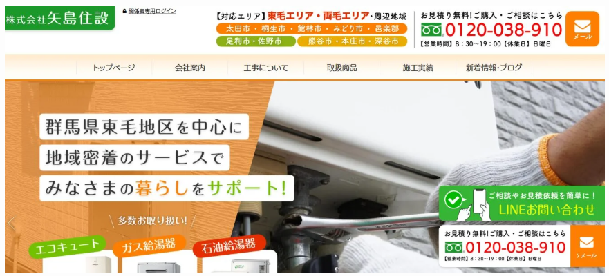 株式会社矢島住設住所:〒373-0852 群馬県太田市新井町520-18受付時間:8:30~19:00(休日:日曜日)