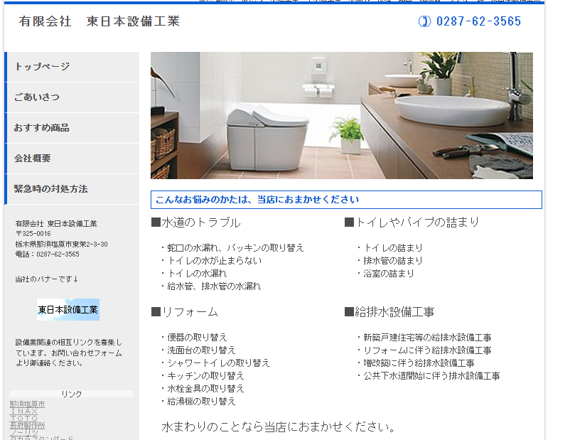 | 運営会社 | 有限会社東日本設備工業 栃木県那須塩原市 東栄2丁目3−30 |