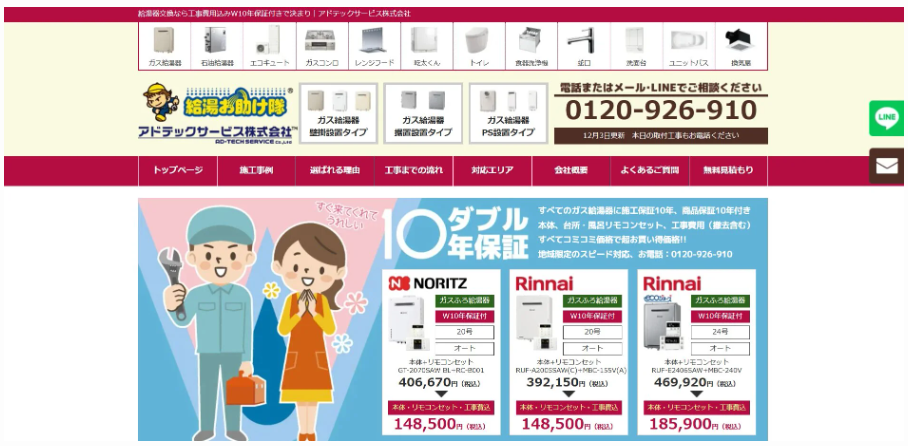 給湯器駆けつけ隊の特徴