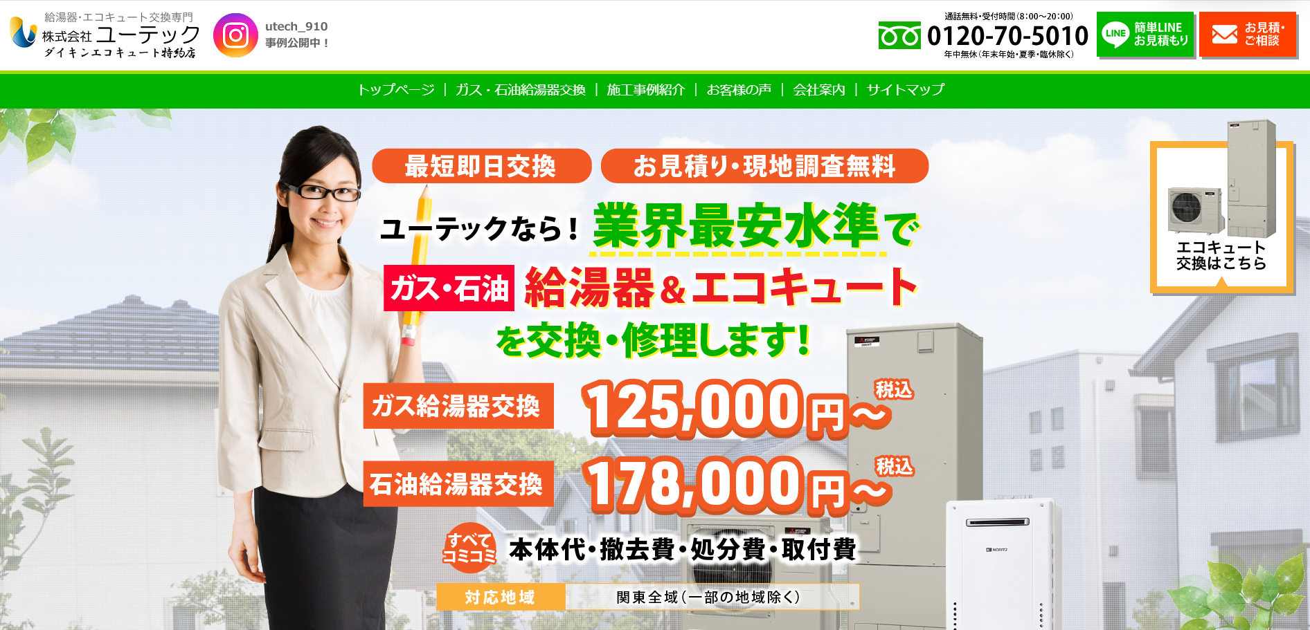 運営会社は東証グロース市場に上場しており、コンプライアンスや施工品質も安心です。在庫を豊富に確保しているため、人気のエコキュートや給湯器も、最短即日または翌日のスピード工事に対応可能な場合があります。