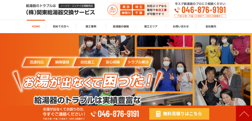 給湯パンダは、給湯器・エコキュート交換工事専門業者です。横須賀市エリアは口コミ高評価の埼玉事業所が担当します。