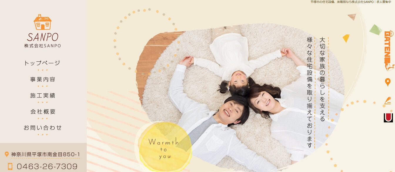 | 平塚市への対応 | 神奈川県全域が対応エリア。 平塚市へも最短30分で訪問可能 (※在庫・交通状況・工事枠によります) |