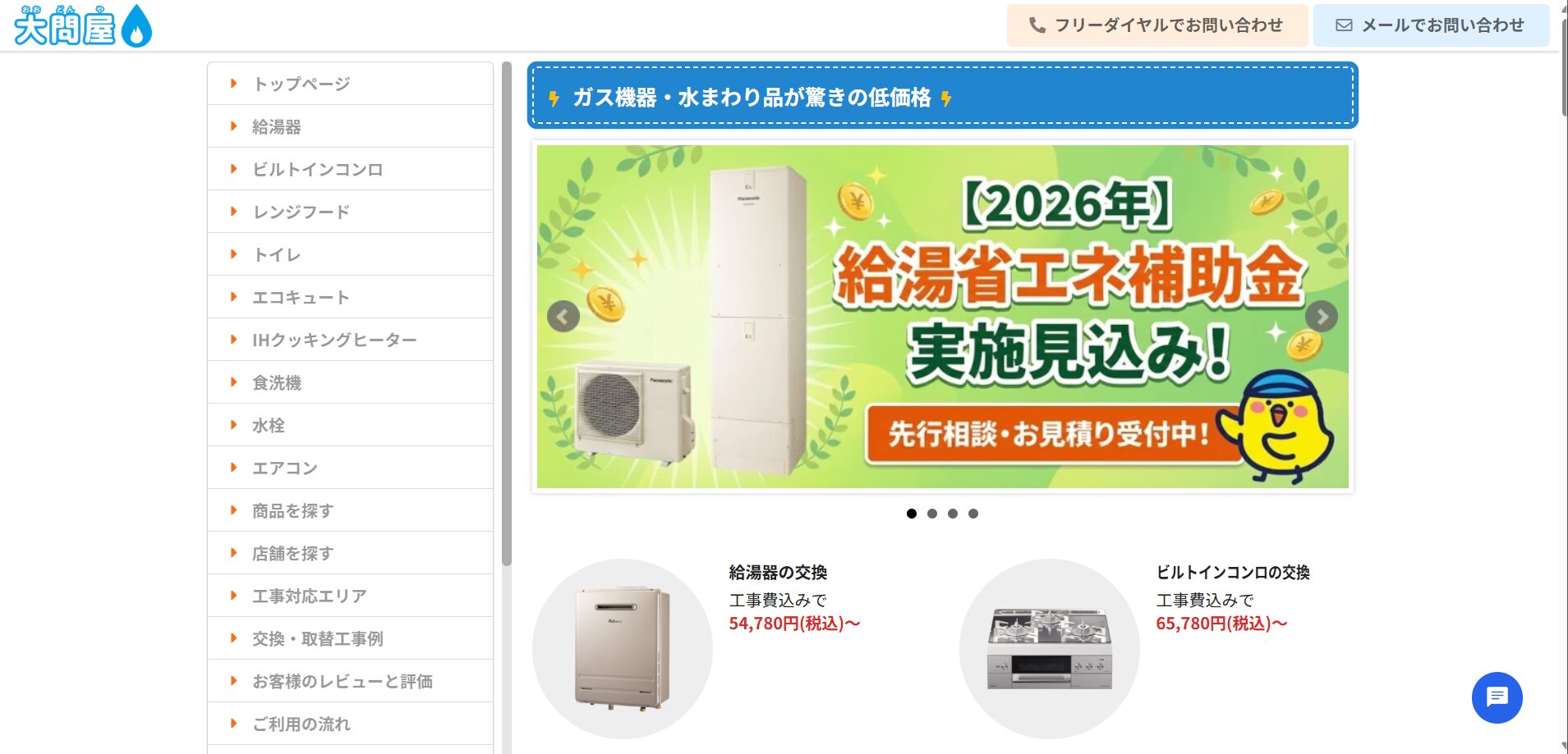 運営会社のトラベルブック株式会社は、信頼できる大手企業です。経済産業省の給湯器補助金にも対応しており、補助金を利用した場合、定価100万超のエコキュートを工事費込みで大幅に安く導入することが可能です。