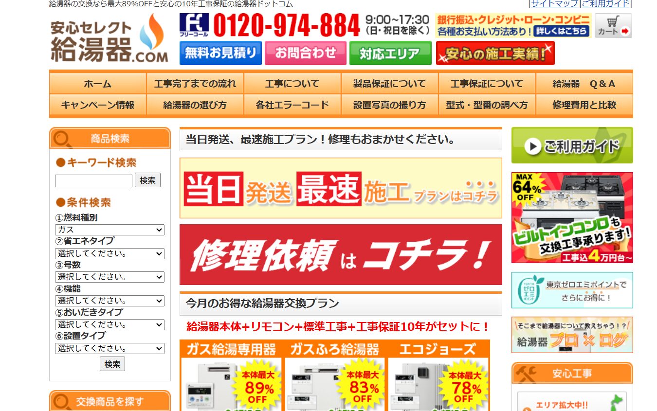 給湯器駆けつけ隊(公式)で確認する