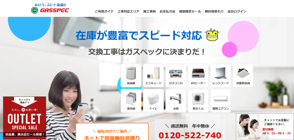- 給湯器・コンロ等の本体価格が大幅割引