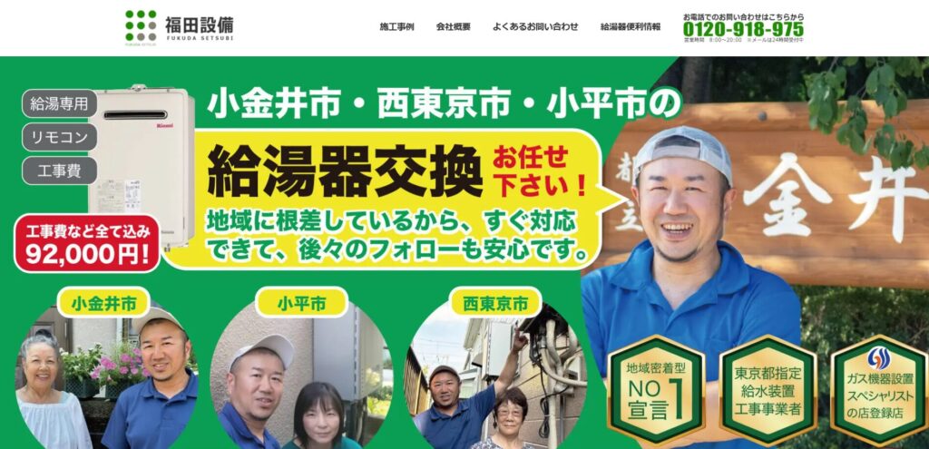 東京都三鷹市周辺で給湯器の交換や修理を検討している方向けに、株式会社福田設備の情報を整理しました(公式対応エリアに三鷹市を明記)。