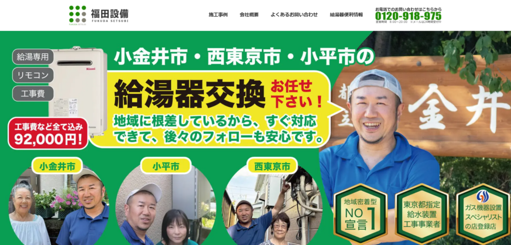 多摩エリアに在庫を抱えている業者であれば、小平市内なら最短で即日〜翌日の工事が可能なケースもあります。お湯が使えない不便を最短で解消しましょう。
