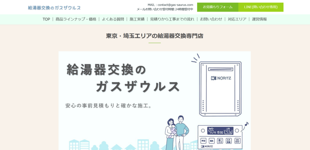 | 運営会社 | 給湯器交換のガスザウルス 東京都清瀬市 野塩5丁目257ー80 |