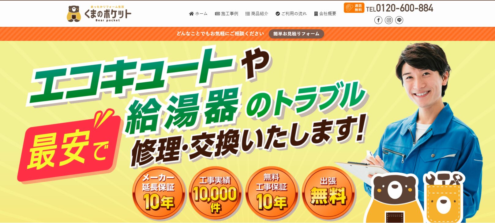 累計工事実績3万件以上の豊富な実績を持ち、給湯器三大メーカー正規販売店なので安心感があります。