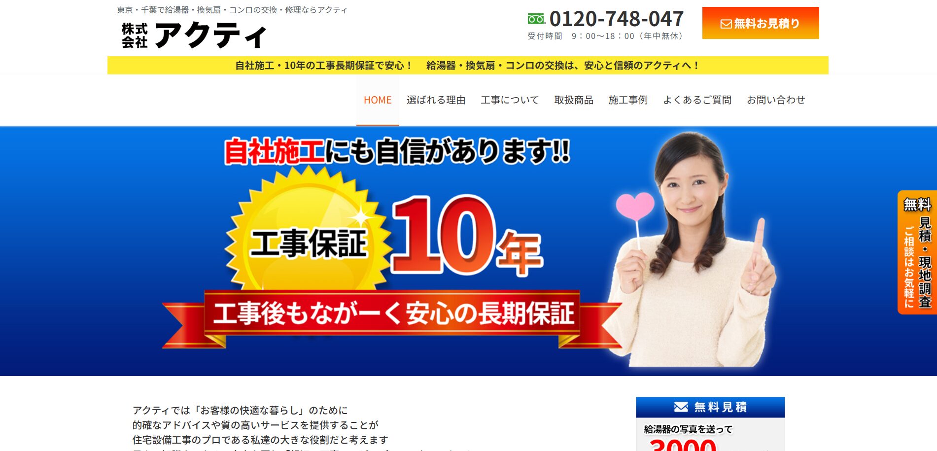 • 公式サイトに本体+標準工事コミコミの総額が掲載されており、給湯器交換の費用感を事前に把握しやすい