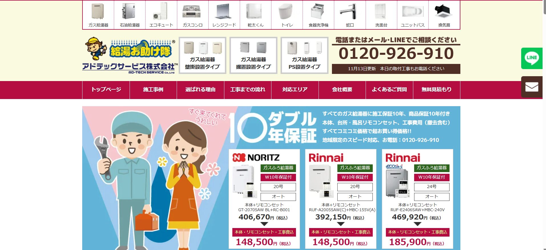 • 最短駆けつけ&当日工事対応や10年保証クラスのアフターサポート(※公式要確認)が心強い
