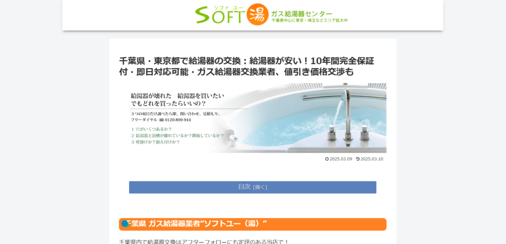 | 運営会社 | 千葉ガス給湯器 ソフトユー 千葉県市原市 富浜3丁目14−11 クレセントゴールド |