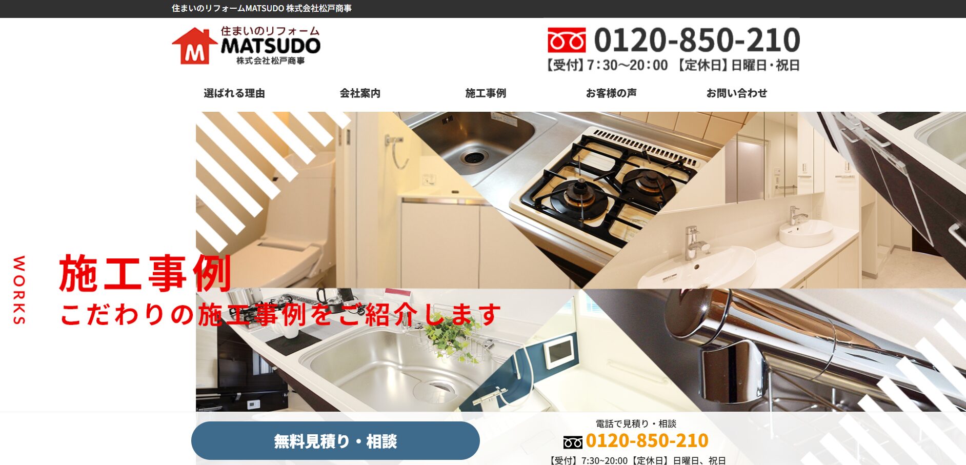 | 見積もり | 見積もり無料(公式条件に準拠)。WEBフォームや写真送付で事前診断が可能で、 標準工事範囲と概算総額を事前に確認できるため、 追加費用トラブルの予防に有効です。 |