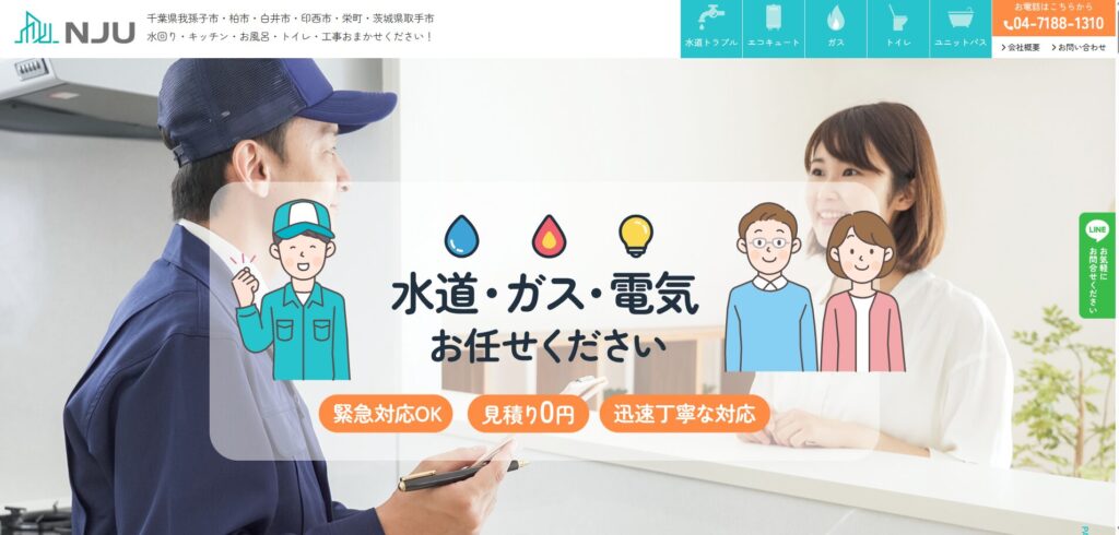 株式会社NJUは、我孫子市に拠点のある事業者です。公式の会社概要では事業内容に「ガス給湯器・ガス器具全般工事」などが明記されています。給湯器交換は設置状況で工事内容が変動しやすいため、先に3点を同条件で揃えると安心です。撤去込み総額 / 追加費用が出る条件 / 最短の工事可能日を同条件で比較して進めてください。
