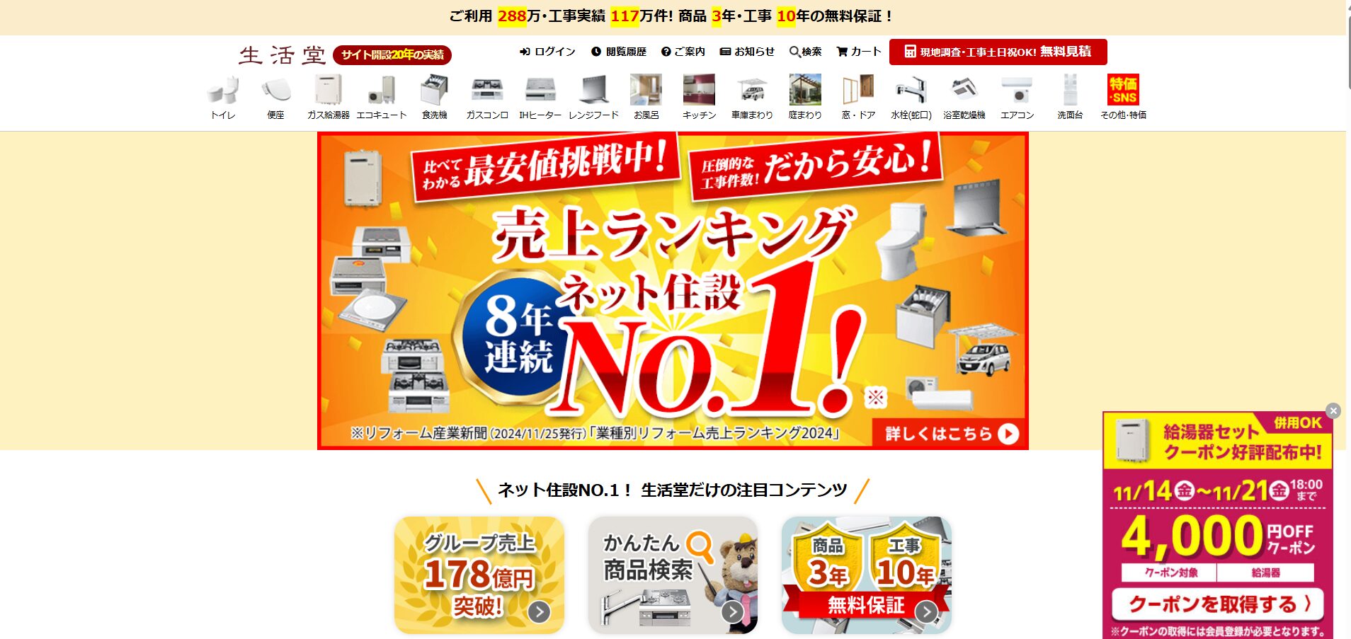 - 最短駆けつけ&当日工事対応や10年保証クラスのアフターサポート(※公式要確認)が心強い