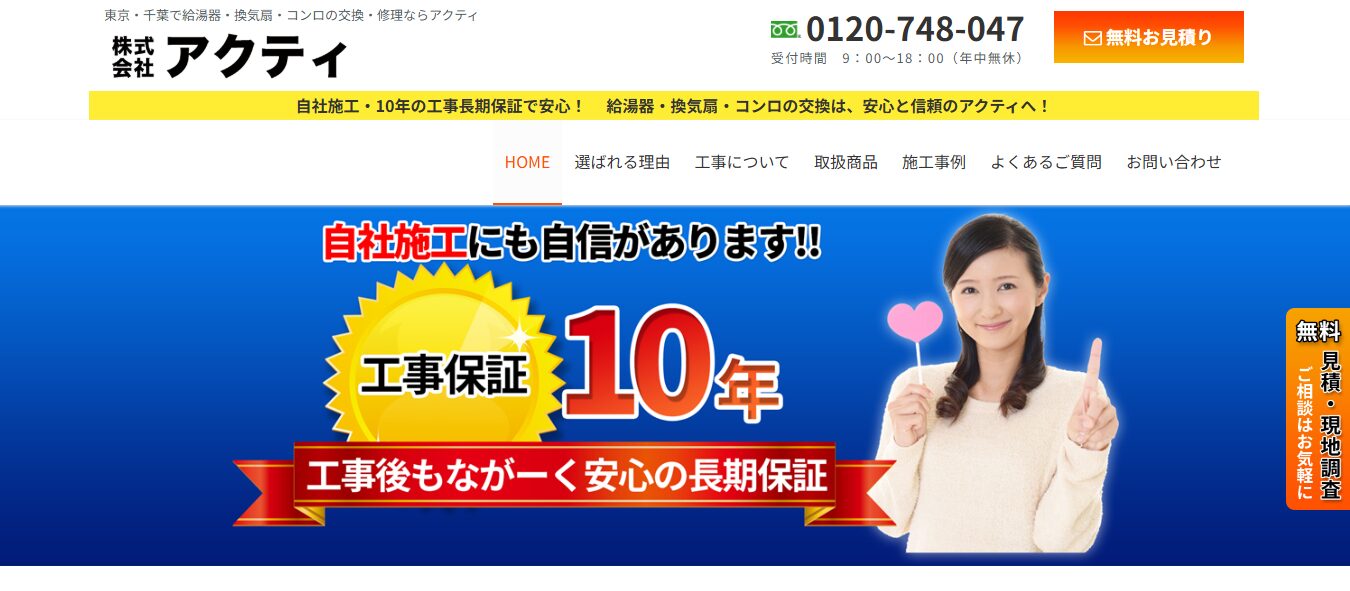 「給湯器駆けつけ隊」は、累計3万件以上の豊富な実績を持つ給湯器交換の専門業者です。最大の魅力は、商品と工事の両方に適用される無料の10年保証。万が一のトラブルにも長期間安心して対応してもらえます。公式サイトでは、ほとんどの商品が工事費込みの総額で表示されているため、料金が分かりやすく、初めての方でも依頼しやすいのが特徴です。