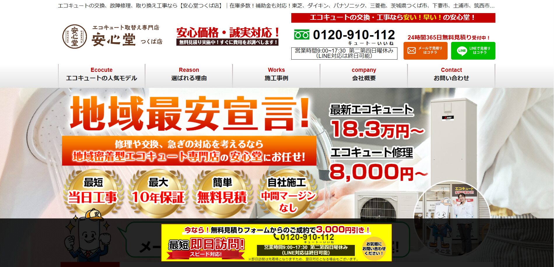 運営会社は東証グロース市場に上場しており、コンプライアンスや施工品質も安心です。在庫を豊富に確保しているため、人気のエコキュートや給湯器も、最短即日または翌日のスピード工事に対応可能な場合があります。